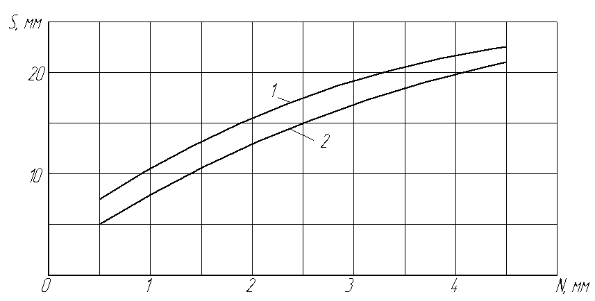 Графіки для визначення мінімальної товщини стінок „S” виливків, отриманих в піщаних формах