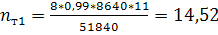 Т>к> – календарный фонд времени (12 мес. или 8640 час);