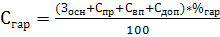 Сумма гарантийных и компенсационных выплат рассчитывается исходя из средней заработной платы, и размер составляет 15% от суммы предыдущих: