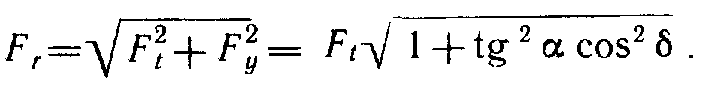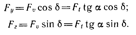 Составляющие сил вдоль осей у и z (б — угол начального конуса) соответственно равны: