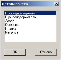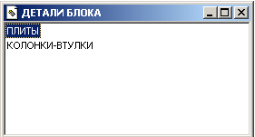 После выполнения пункта меню “Детали блока” или “Детали пакета” на экране появляется список включенных в состав деталей: