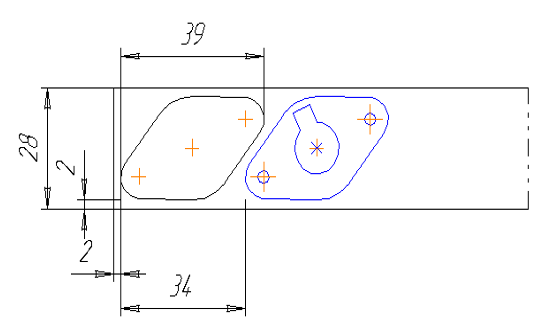 Для определения размеров заготовки необходимо знать размеры перемычек, которые при штамповке детали из полосы необходимы для обеспечения прочности и жесткости. При заданной толщине полосы S=1 и при условии ручной подачи , которая выбирается исходя из экономических соображений m=2мм, n=2мм.