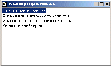 Работу следует начать с пункта «Проектирование пуансон - матриц». Размещаем появившийся на экране фантом контуров детали с соответствующими обозначениями в удобном месте чертежа. В появившемся меню указываем номер контура для пуансон – матрицы. Подтверждаем правильность выбора.