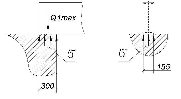 В данной курсовой работе нагрузка от перекрытия передается на несущие стены через сравнительно небольшую площадку, размеры которой определяются глубиной заделки балки и шириной нижнего пояса. Возникающие при этом напряжения на площадке контакта балки настила и стены ограничиваются прочностью материала стены. Материал стены в месте контакта - бетон класса Б20 R>пр>=0,9 кН/см2=9MПа - призменная прочность бетона. Напряжение в бетоне от нагрузки принимаем равномерно распределенным по всей площадке.