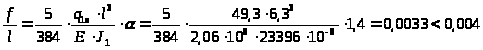 Фактический относительный прогиб зависит от геометрических параметров балки и нормативной нагрузки: