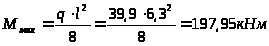Максимальный изгибающий момент в балке от расчетной нагрузки: