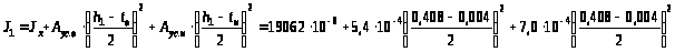 При проверке прочности усиленной балки геометрические характеристики сечения (момент инерции и момент сопротивления) вычисляем без учета смещения положения центра тяжести двутавра вследствие того, что площади сечения верхнего и нижнего листов усиления практически не отличаются. Момент инерции усиленного сечения: