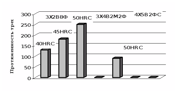 Следует отметить, что увеличение содержания хрома выше 5% наряду с усилением карбидной неоднородности вызывает также повышение чувствительности к перегреву. Этот недостаток присущ сталям, легированным 1–2% W (Mo) и 0,3–0,8% V [1].