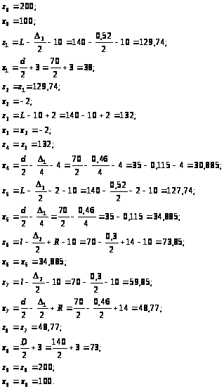 На эскизе изображается траектория инструмента с пронумерованными опорными точками. Опорные точки располагают в местах смены траектории режущего инструмента, изменения геометрического элемента траектории (прямая, дуга окружности и др.) или скорости подачи, например, переход с быстрого хода на рабочую подачу и наоборот. Для размеров, где не указаны допуски, рекомендуется их симметричное расположение.