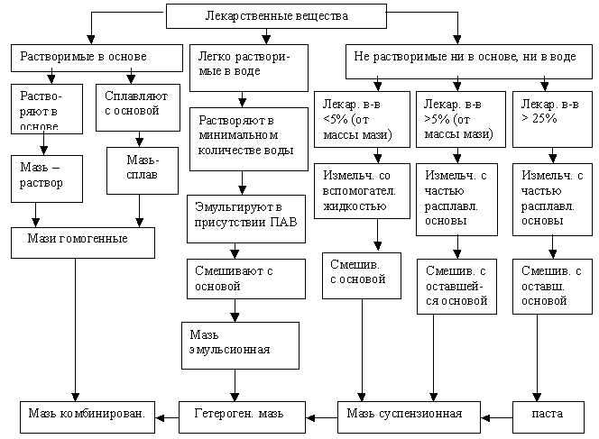 Схема 1. Введение лекарственных веществ в мазевую основу