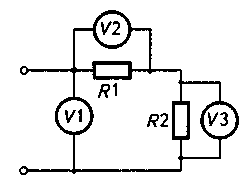 В умовах виробництва, наприклад при пошуку пошкоджень у електричних колах, величини напруг на різних ділянках кола вимірюють одним вольтметром, який почергово приєднують до різних точок кола, як це показано на рис. 12. Щоб виміряти величину напруги джерела, вольтметр за допомогою щупів приєднують до точок А і D. Для вимірювання напруги на резисторі R1 — до точок А і В, на R2 — до точок В і С, на R3 — до точок С і D.