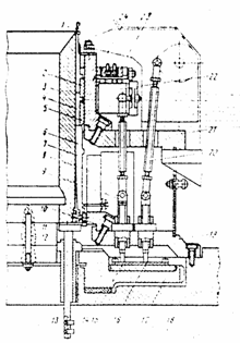 Кулирный клин 6 действует на все пятки 10 и 11 переднего уровня. Минимальная глубина кулирования устанавливается вручную, а затем изменяется автоматически от барабана управления.