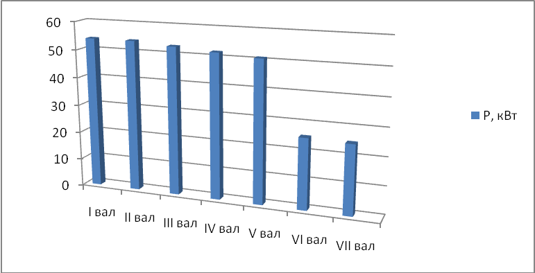 9. Построить диаграммы частот вращения, мощностей и крутящих моментов валов передачи.
