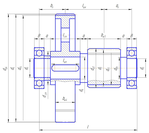 Выполним эскиз промежуточного вала (рис. 3).