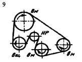 1, 3, 5 — передачи с двумя шкивами; схемы
