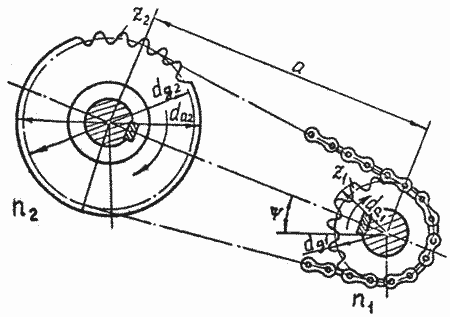 Межосевое расстояние и длина цепи. Минимальное межосевое расстояние определяют из условий:
