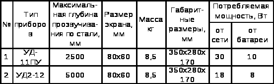 Таблица Основные параметры ультразвуковых дефектоскопов