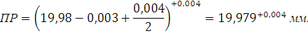 минимальный S>min>=EI–es=0-0,020=0,020 мм.