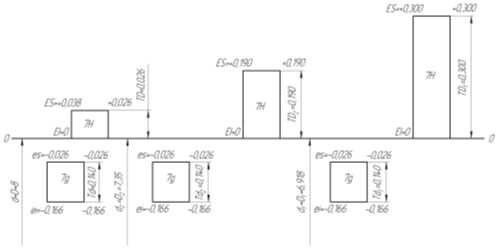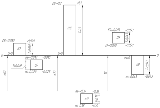 Вычерчиваем схему полей допусков (рисунок 15), проставляем необходимые обозначения.