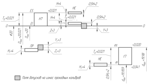 Рассчитать исполнительные размеры калибров для контроля деталей по посадке с зазором из задания №1 ∅20H7/f7.