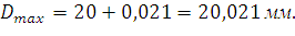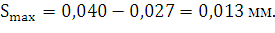 максимальный S>max>=ES–ei=0,021-(-0,041)=0,062 мм;