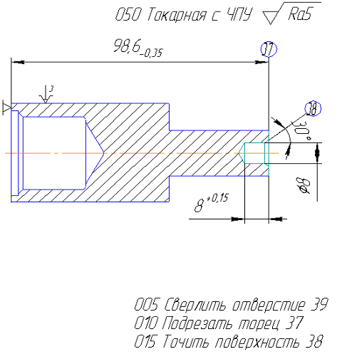 Согласуем подачу со станком и принимаем Sр.ст=0,036 мм/дв.ход