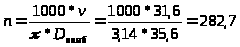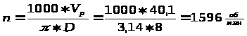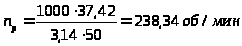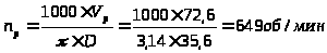 Значения чисел вращения оборотов станка сводим в таблицу: