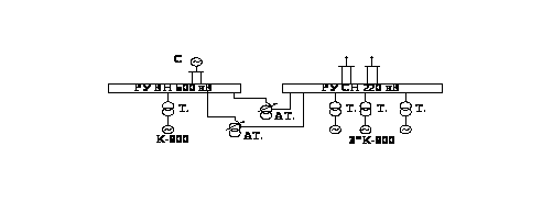 Если на электростанции имеются два повышенных напряжения, то возможны следующие варианты построения структурной схемы: с отдельными АТС между РУВН и РУСН