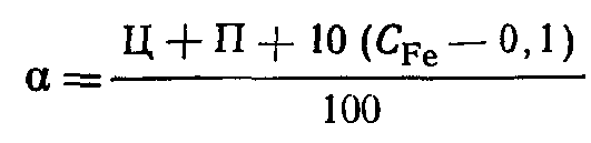 где Ц — цветность воды, град; П — эмпирическая величина, учитывающая влияние мутности воды, равная 7 для вод цветностью до 20 град и 9 для вод цветностью 20 ... 50 град; CFe — концентрация железа, мг/л.