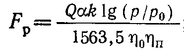 где Fp — расчетный поток бактерицидной энергии, Вт; Q — расход обеззараживаемой воды, м3/ч; а — коэффициент поглощения, см-1; k—коэффициент сопротивляемости бактерий, принимаемый равным 2500 мк*Вт*с/см2; р0— коли-индекс воды до облучения; р — коли-индекс воды после облучения, принимаемый согласно ГОСТ 2874—82 не более 3; η0 — коэффициент использования бактерицидного потока, учитывающий поглощение лучей в слое воды, принимаемый равным 0,9; ηп — коэффициент использования бактерицидного потока, учитывающий поглощение лучей отражателем (в аппаратах с непогруженным источником) или в кварцевых чехлах (в аппаратах с погруженными источниками). Значение коэффициента зависит от типа аппарата; для предварительных расчетов он может быть принят равным 0,9.