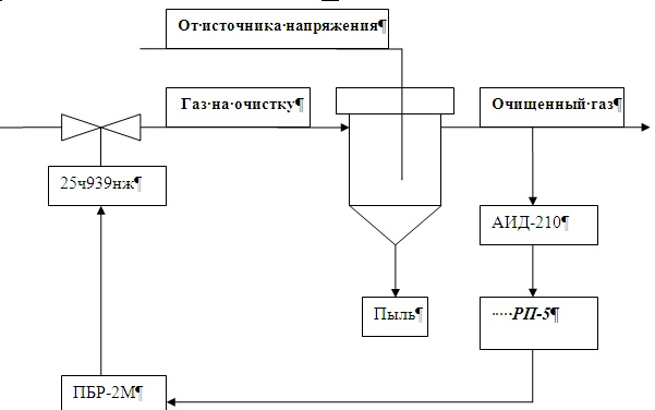 Целью управления технологическим процессом является поддержание определенной концентрации очищенного газа путем электрической очисткой.