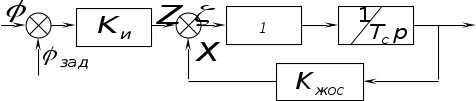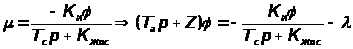 - для регуляторов непрямого действия без обратной связи — время исполнительного механизма, характеризующее максимальную скорость его перемещения (например, скорость перемещения поршня ИМ, изменяемую посредством степени открытия дроссельного клапана в одном из силовых трубопроводов);