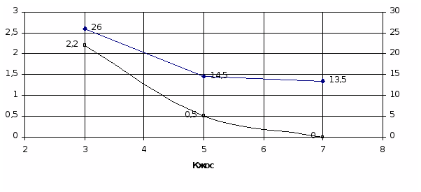 Оптимальным выбираем Кжос =7.