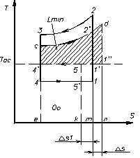 Площадь под процессом 4 - 1, характеризующая количество подведенного тепла к рабочему телу, равна площади е - 4' - 5 - к, следовательно, процесс 5 - 4' характеризует убывание энтропии окружающей среды: