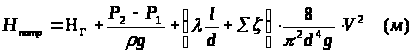С учетом предыдущих формул, выражение для потребного напора можно представить как