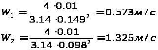 Расчет по (1) выполняют отдельно для всасывающей линии и напорной, при этом W принимают для всасывающей линии 0,8 м/с, для напорной 1,5 м/с.