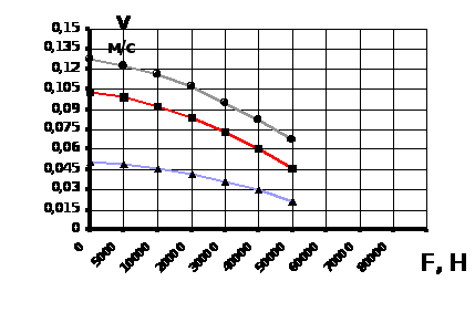 Рисунок 3 Изменение скорости от усилия на штоке гидроцилиндра