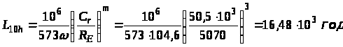 8. Визначаємо ресурс попередньо обраного кулькового радіально-упорного підшипника середньої серії 46309: