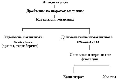В ходе обогащения руды из нее надо по возможности максимально удалить оксиды железа и кальцит. Эти примеси в дальнейшем ухудшат качество готового концентрата и увеличат расход серной кислоты при переработке концентрата в готовую борную продукцию. Для обогащения руды применяется магнитно – флотационный метод: предварительно измельченная руда проходит магнитную сепарацию для отделения железистых фракций, а затем поступает на основную и две перечистых флотации.
