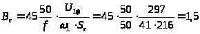 магнитная индукция в стержнях В>с>=1,6 Тл;