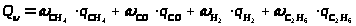 де СО, Н2, СmHn – об’ємні долі компонентів, що горять.