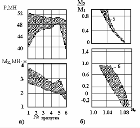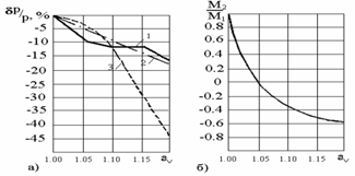 На рис. 1б представлена экспериментальная зависимость отношения крутящих моментов на ведущем и ведомом валках от величины коэффициента асимметрии. Кривая имеет гиперболический вид и пересекает ось абсцисс в точке, соответствующей а>v> = 1.05 . Этот момент соответствует переходу ведомого валка в генераторный режим при отсутствии ещё полной пробуксовки ведущего валка по металлу.