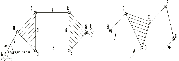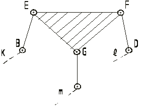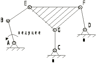 Данная группа кроме двух базисных звеньев BCD и EGF, образующих два жестких замкнутых контура, имеет один подвижный четырехсторонний замкнутый контур CEFD (рис.15).