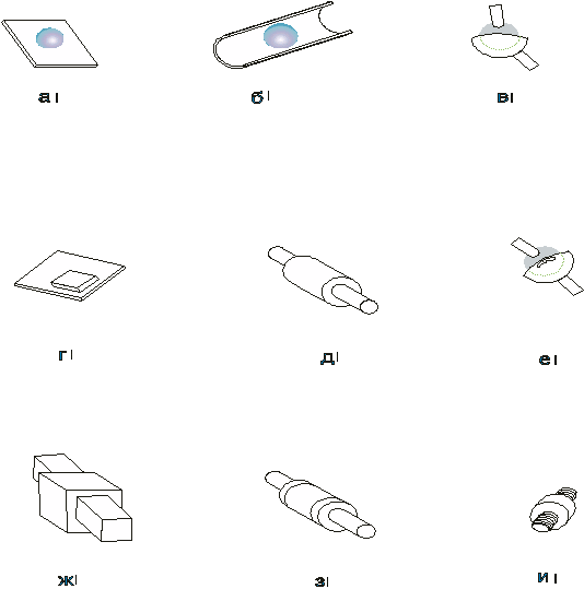 - пара IV класса – (рис.1 д, и, е)двухподвижная пара, число степеней свободы звена равно 2, число условий связи – 4;