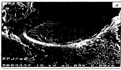 Процесс спекания для рассматриваемого случая характеризуется в начальной стадии образованием прослоек расплава с отрицательным радиусом кривизны и в конечной образованием сферических пор.