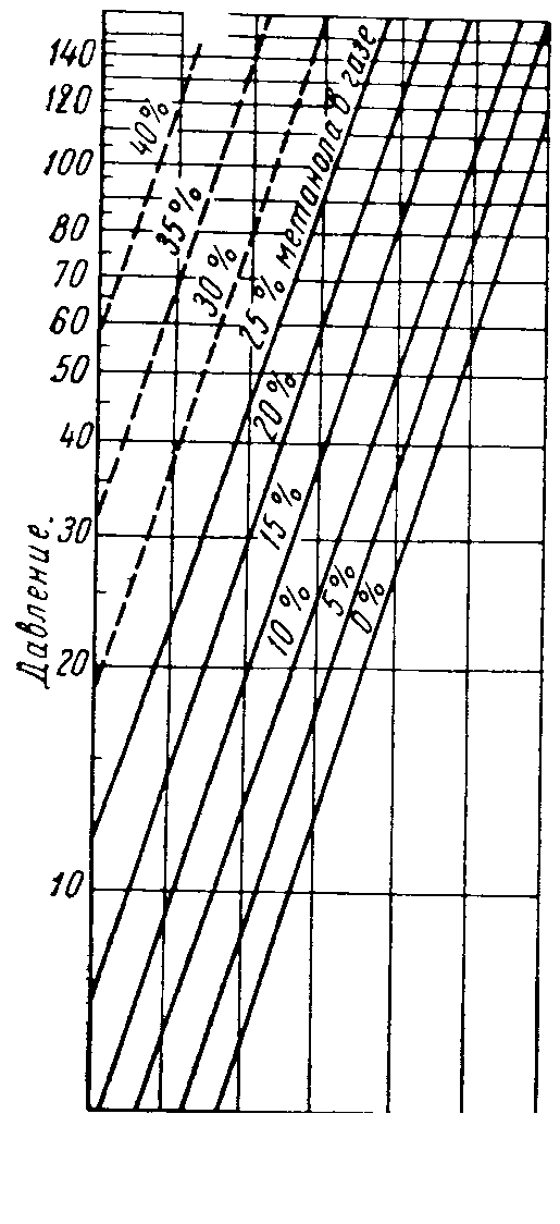 {Количество метанола, необходимого для насыщения жидкой фазы, кг/тыс. м3}