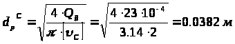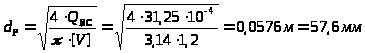 Расчетные значения внутренних диаметров трубопроводов: