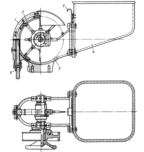 Захваченные крючками ПО транспортируются к лотку-магазину 6, причем правильное положение ПО сохраняется с помощью специальной трубки 1. Если перед входом в трубку по какой-либо причине ПО не занимает требуемого положения, то под действием амортизатора вибратора он сбрасывается или меняет положение.