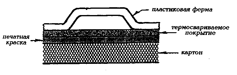 Классическими примерами являются блистерная и обтягивающая упаковки. Обычно бумажный элемент - это просто плоский лист картона, который запечатан заранее и форма которого вырублена штампом.