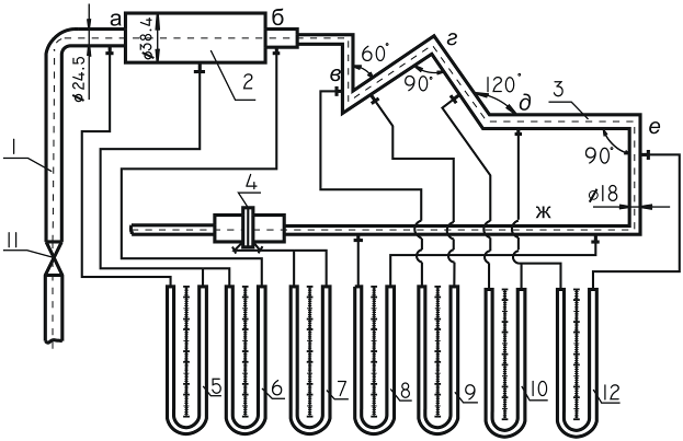 Цель работы: Опытное определение коэффициентов трения и коэффициентов местного сопротивления. Исследование зависимости величины коэффициентов трения и местного сопротивления от режима движения жидкости.